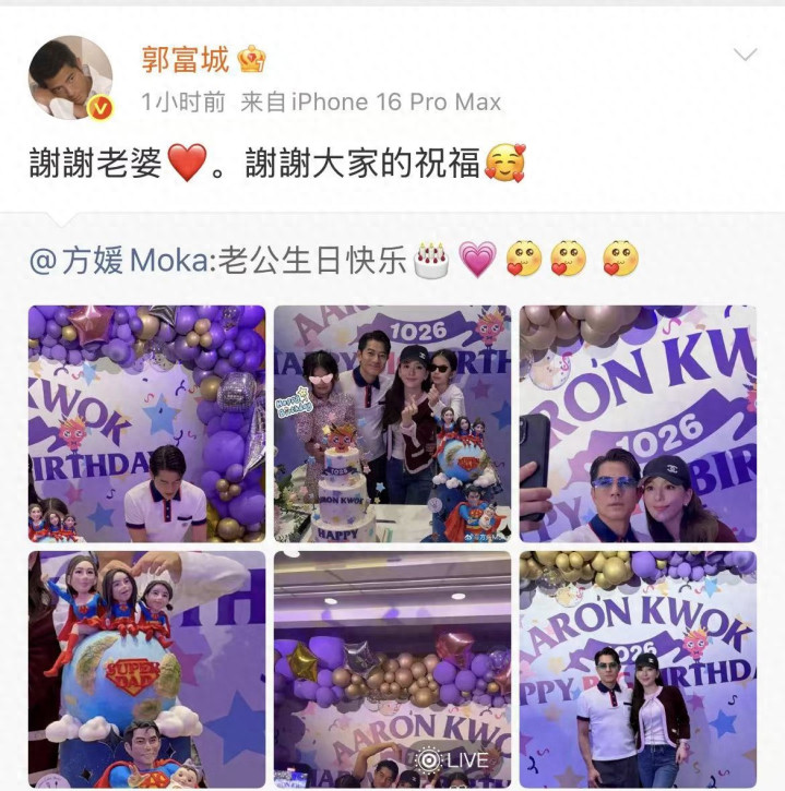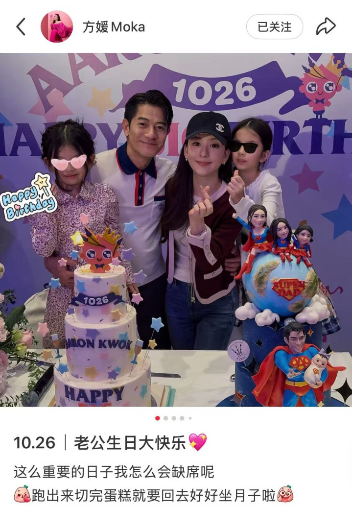 这场庆生派对还顺带回应了一个老话题——追生儿子,之前港媒一直传方媛怀的是男孩,哪怕郭富城在成都演唱会上辟谣“从来没刻意想要儿子”,也没人相信,直到三胎还是女儿还有人取笑她要继续生。